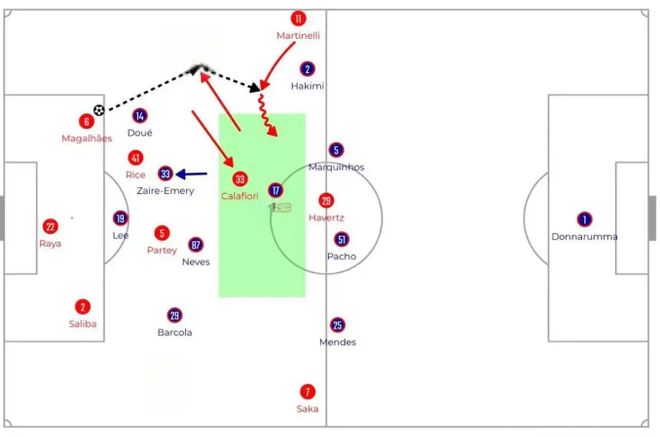 阿森纳利用加布里埃尔在近门柱的优势,他的头球后蹭找到了在后点的特罗萨德,后者完成得分。富勒姆主帅马尔科·席尔瓦赛后坦言,加布里埃尔“跳得太高,几乎不可能阻止”。